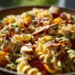 BBQ Chicken Pasta Salad is a vibrant dish that combines rotini pasta, cooked chicken coated in BBQ sauce, fresh vegetables, and ranch dressing, creating a flavorful, refreshing meal.