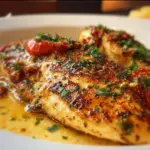 - Combine and Serve: Place the grilled chicken into the skillet with the sauce. Spoon the sauce generously over the chicken and top with the chopped sun-dried tomatoes and torn goat cheese. Keep the dish warm until you’re ready to serve, allowing the cheese to slightly melt.