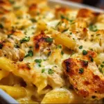 This recipe is sure to become a staple in your home, offering a delightful meal that’s easy to prepare and bursting with flavor. Enjoy your Cheesy Garlic Chicken Pasta Bake!