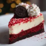 A festive and creamy delight that combines the rich taste of red velvet cake with the luxurious texture of cheesecake, perfect for holiday gatherings.