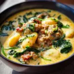 A comforting and creamy soup featuring Italian sausage, tender gnocchi, and fresh spinach, perfect for chilly days.