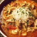 Crockpot Chicken Parmesan Soup is a comforting dish that combines tender chicken, tomatoes, creamy cheese, and spices, all cooked together in a slow cooker. It’s inspired by traditional chicken parmesan but served in a warm, hearty soup.