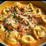 A delightful dish combining tender chicken, creamy cheese tortellini, and savory flavors, perfect for busy weekdays or cozy family dinners.