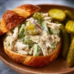 A refreshing and unique chicken salad with tender chicken, crunchy dill pickles, and zesty mustard, perfect for lunch or picnics.