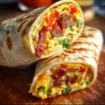 Serving the Flavorful Breakfast Burrito Twist can be as simple or as fancy as you choose. Present your burritos on a colorful plate, and consider garnishing with extra salsa or chopped cilantro for a vibrant touch. For an added layer of flavor, you might serve them alongside some sliced jalapeños or a dollop of sour cream.