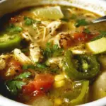 A comforting and flavorful soup made with shredded chicken, fresh vegetables, and tangy salsa verde, perfect for cozy gatherings and any occasion.