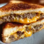 A Grilled Cheese Patty Melt is a delicious sandwich made with a burger patty nestled between slices of grilled cheese. It combines the richness of melted cheese with the hearty flavor of a beef patty, all encased in crispy, buttery bread.