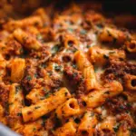 A comforting one-pot meal featuring ziti pasta, savory Italian sausage, rich marinara sauce, and melty cheese, perfect for busy weeknights.
