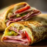 A delicious, warm, and crispy tortilla wrap filled with Italian deli meats, cheeses, and tangy banana peppers, perfect for a quick lunch or light dinner.