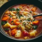 A hearty Italian soup filled with vegetables, beans, and pasta, perfect for any season.