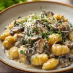 Serve this dish immediately while it’s hot, and enjoy the cozy comfort that comes from this Mushroom Gnocchi with Parmesan Cream Sauce.