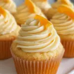 Delightful orange cupcakes bursting with citrus flavor, topped with a rich cream cheese frosting.