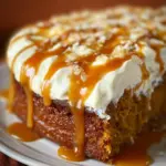 A great addition is a drizzle of salted caramel on each slice, enhancing the flavor while also adding visual appeal. Consider garnishing with a sprinkle of cinnamon or some pecans for added texture and color. If you really want to impress, serve the cake with a dollop of whipped cream or a scoop of vanilla ice cream on the side—these toppings blend beautifully with the cake, turning a simple dessert into a full-on indulgence.