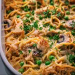 Turkey Tetrazzini is a creamy pasta dish made with shredded turkey, cooked in a rich sauce with mushrooms, peas, and cheese. It’s baked until bubbly and golden, making it a delicious comfort food option.